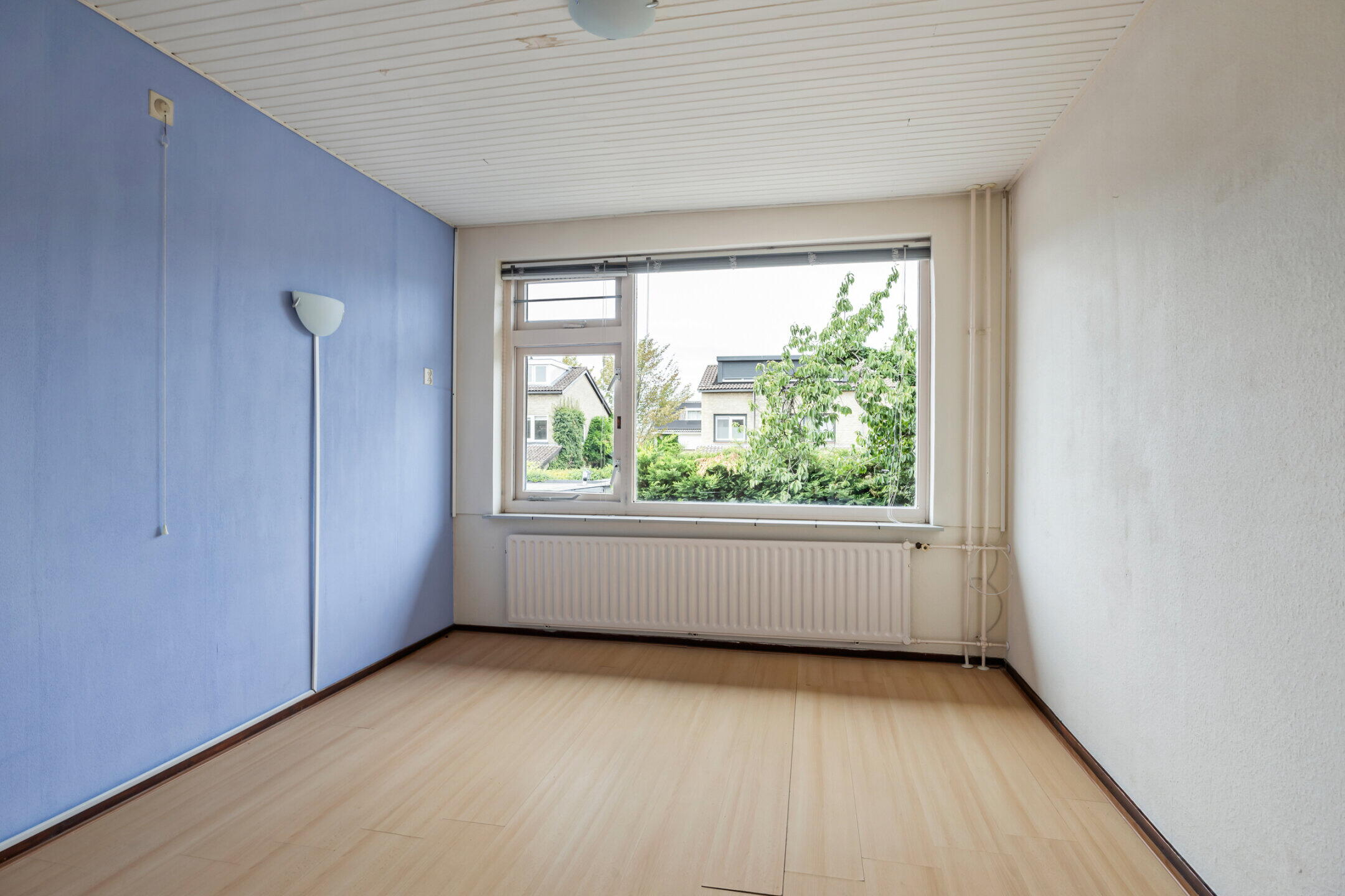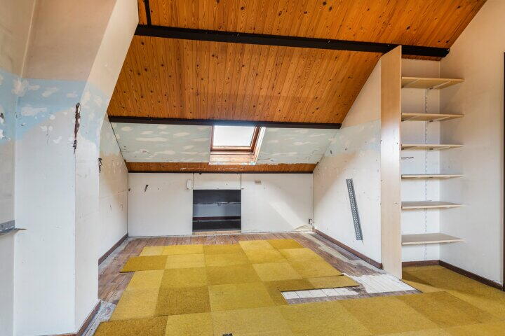 De zolderkamer – slaapkamer 4 (ca. 4.69 x 3.69m) is voorzien van 3 dakramen en diverse bergmogelijkheden achter de schotten.