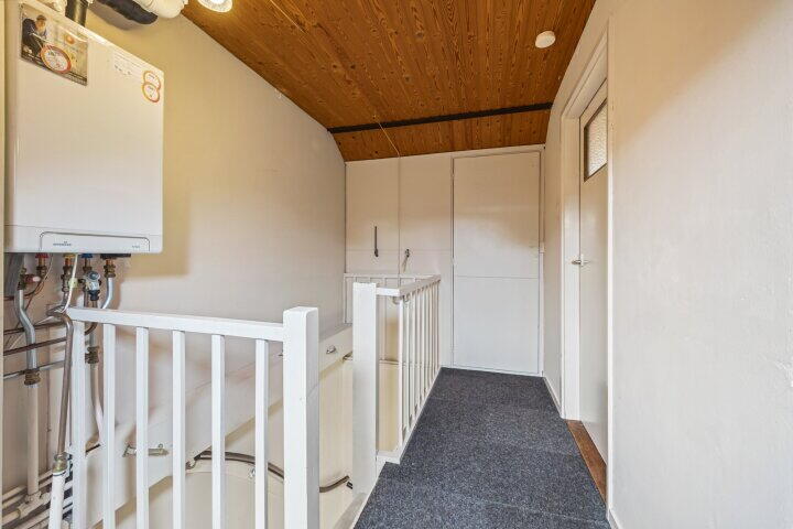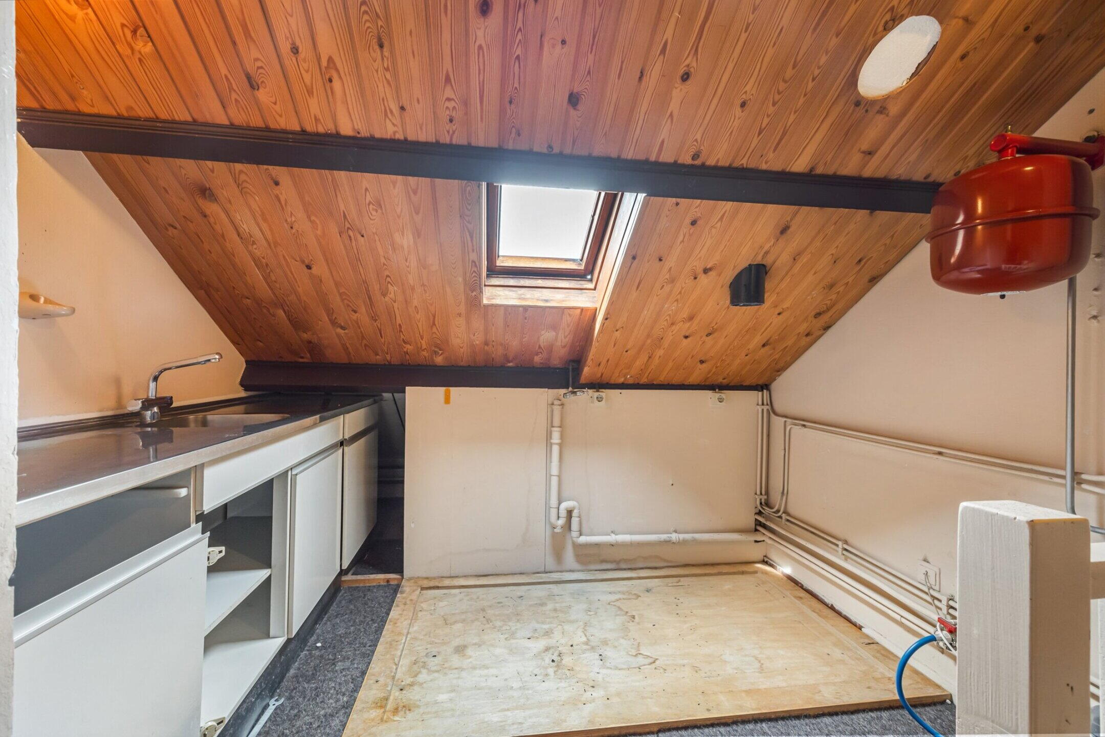 De voorzolder is voorzien van een eenvoudig keukenblok, dakraam, geeft toegang tot een ruime bergkamer en tevens vinden we hier de opstelling van de c.v. combiketel (Intergas hr eco, ca. 2015).