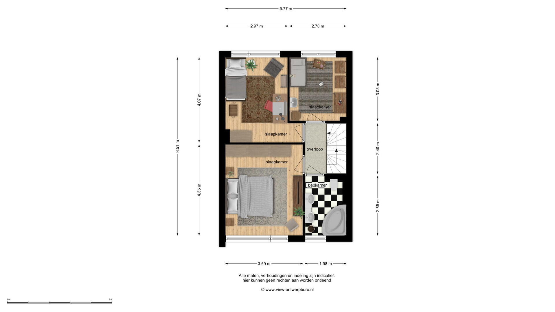 Slaapkamer 2 (ca. 4.07 x 3.69/2.97m) is gelegen aan de achterzijde van de woning.